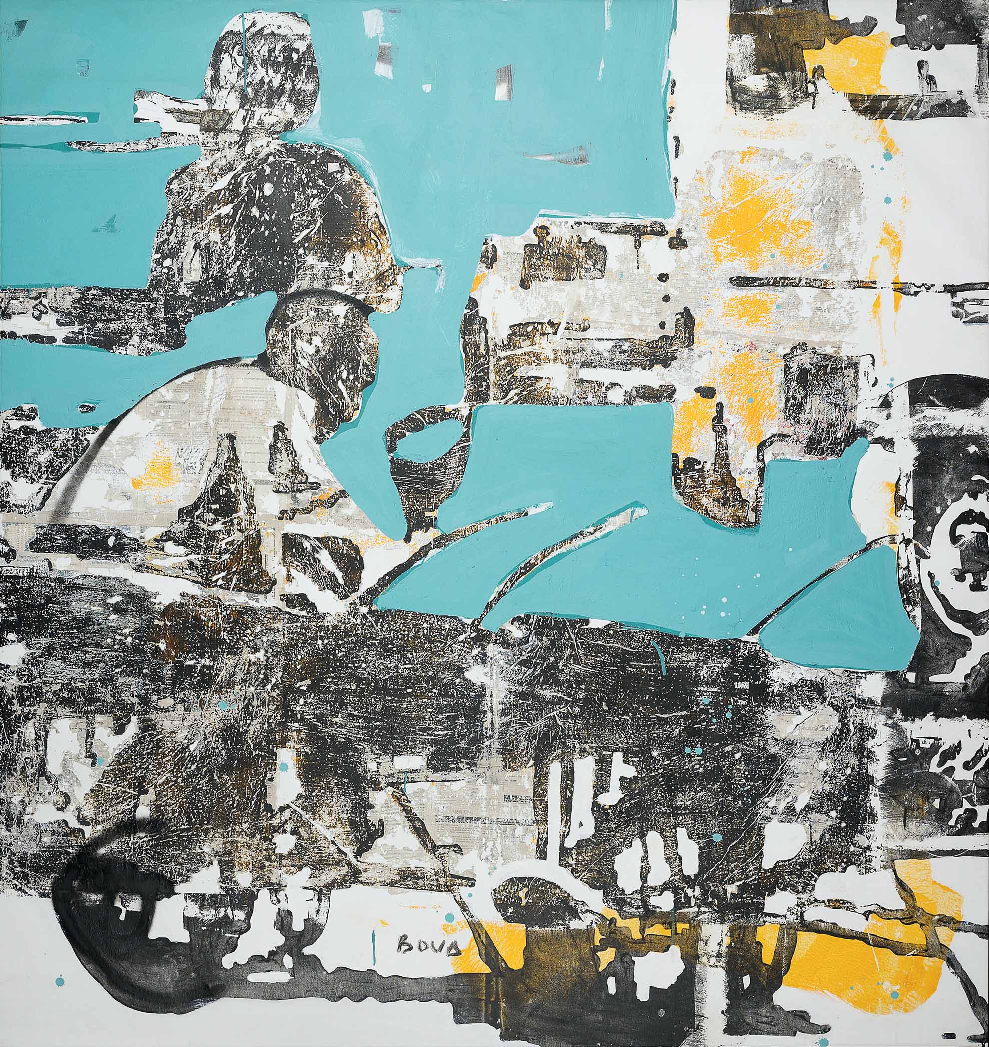 mixed media and tar on canvas