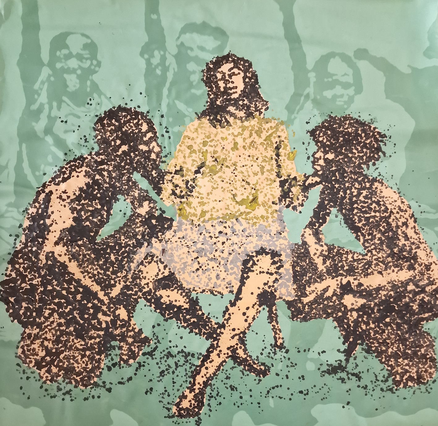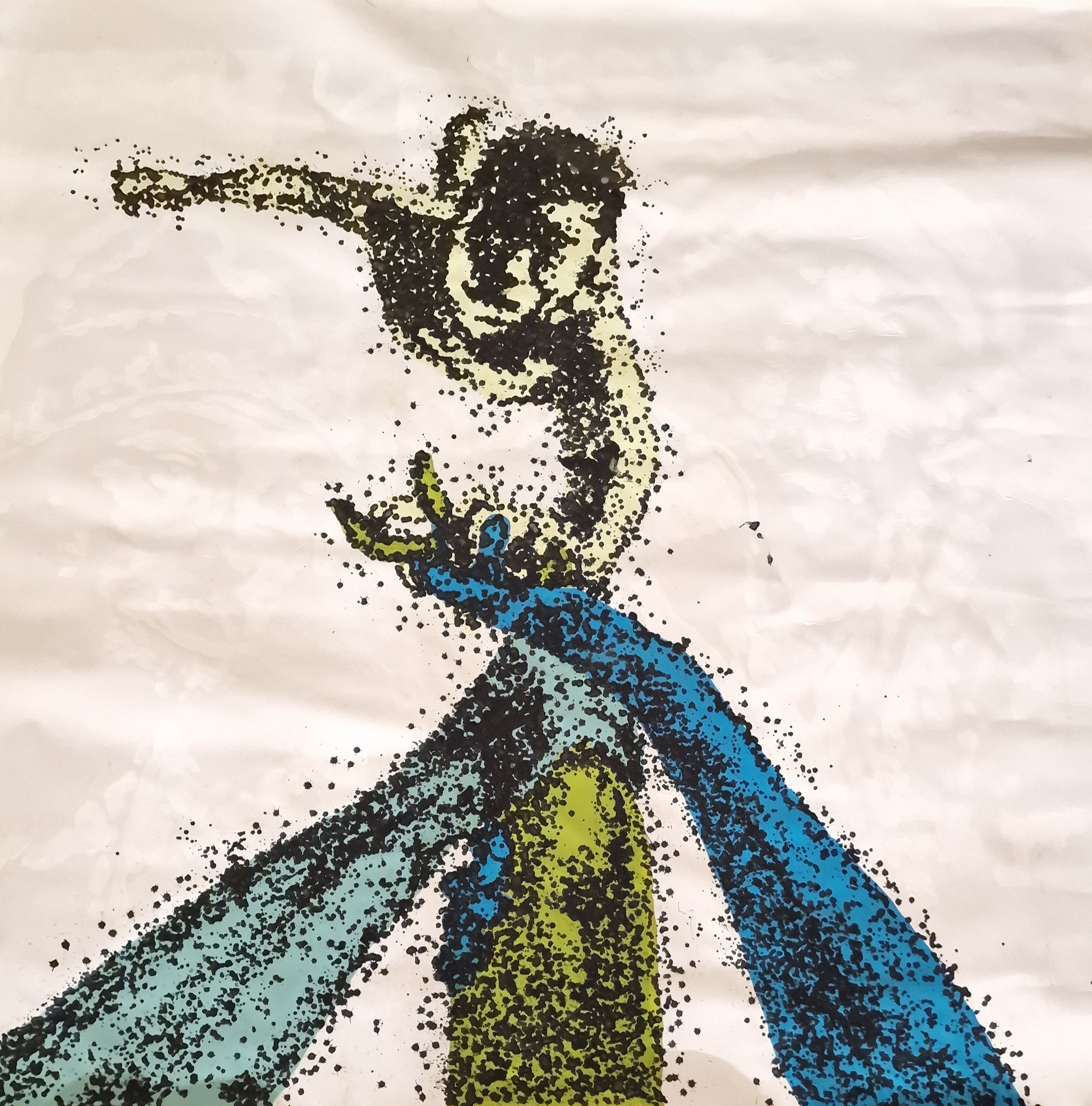 Melted recycled plastic and mixed media on canvas