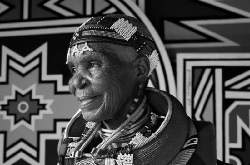 One of South Africa’s most renowned artists, Esther Mahlangu paints vibrant geometric works based on traditional Ndebele designs.