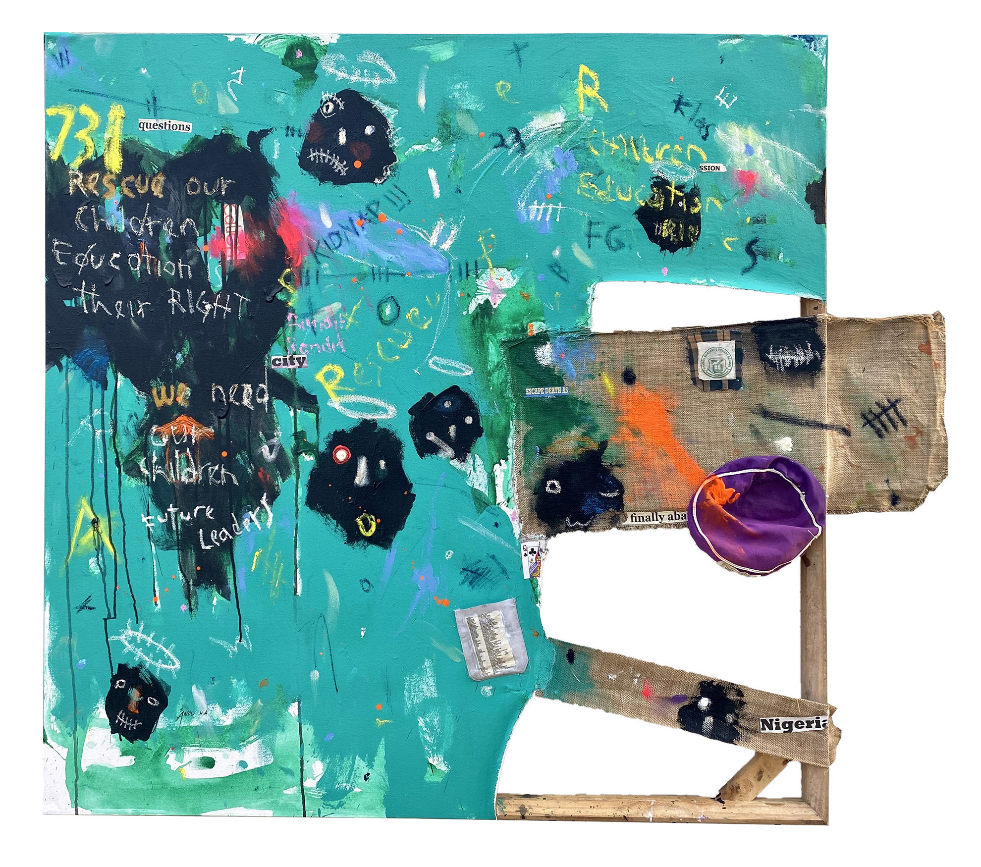 As a mixed media artist, Andu is known to be bold on canvas infusing a variety of discarded materials to create intricate works that speaks directly to societal issues with each material adding substance to the whole piece.