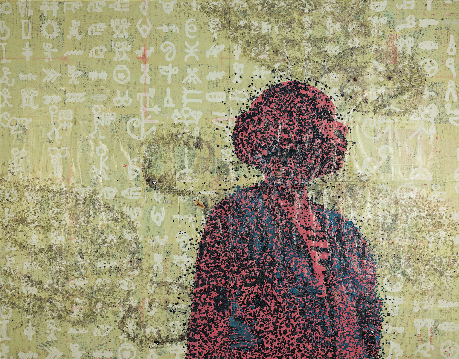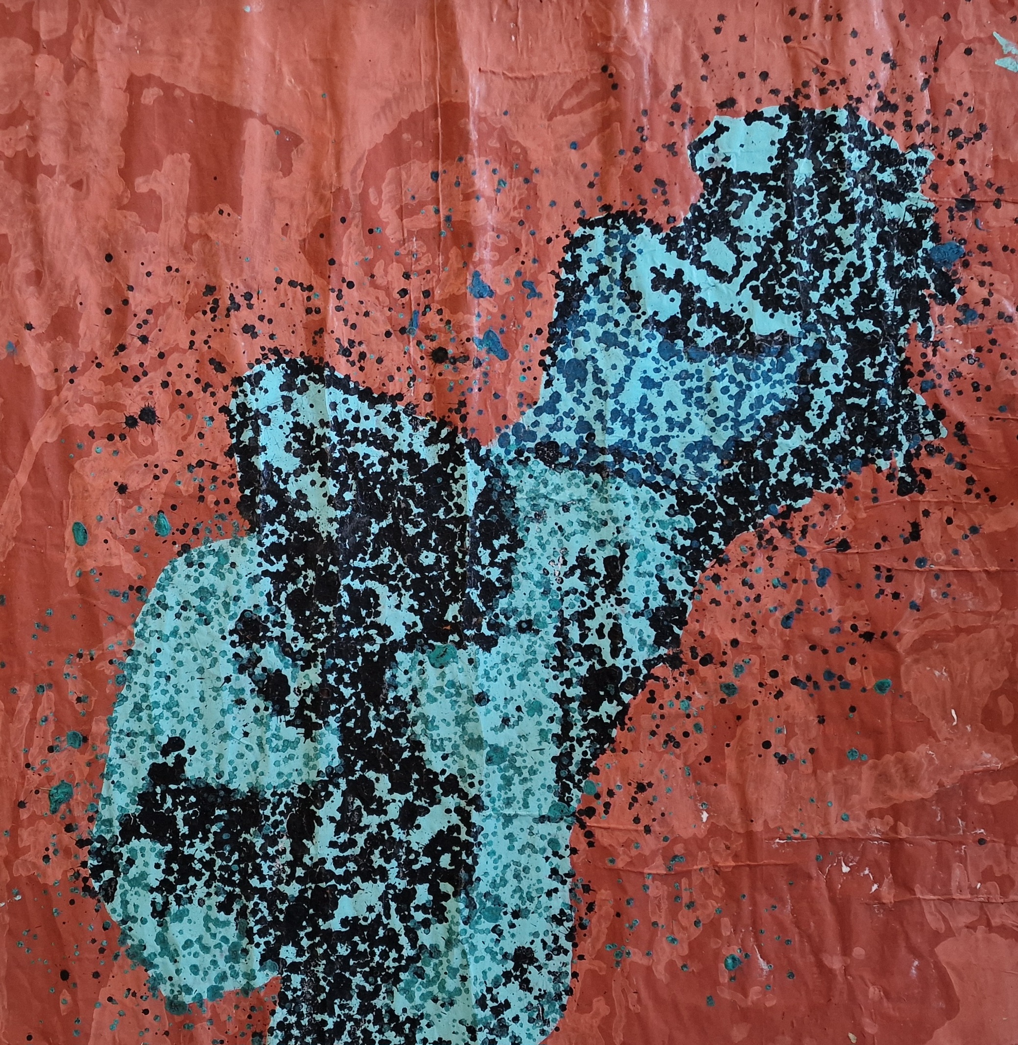 Melted recycled plastic and mixed media on paper mounted on canvas