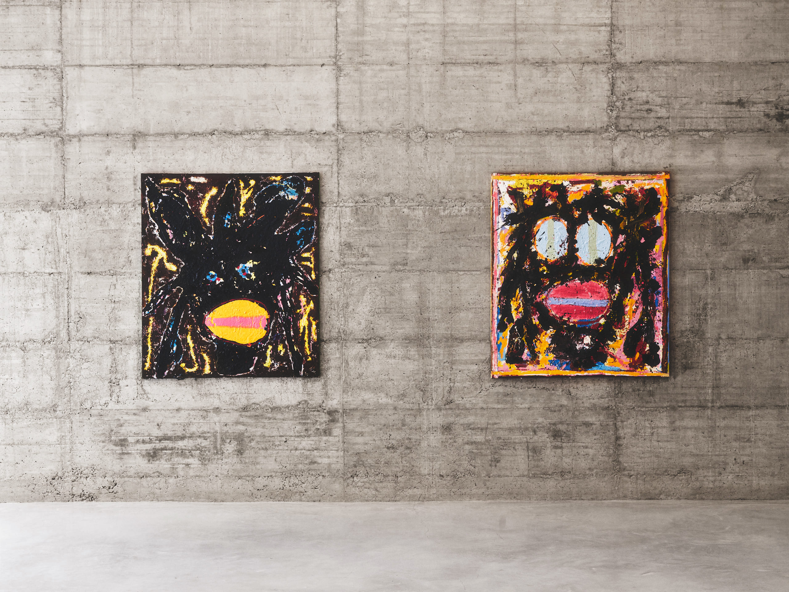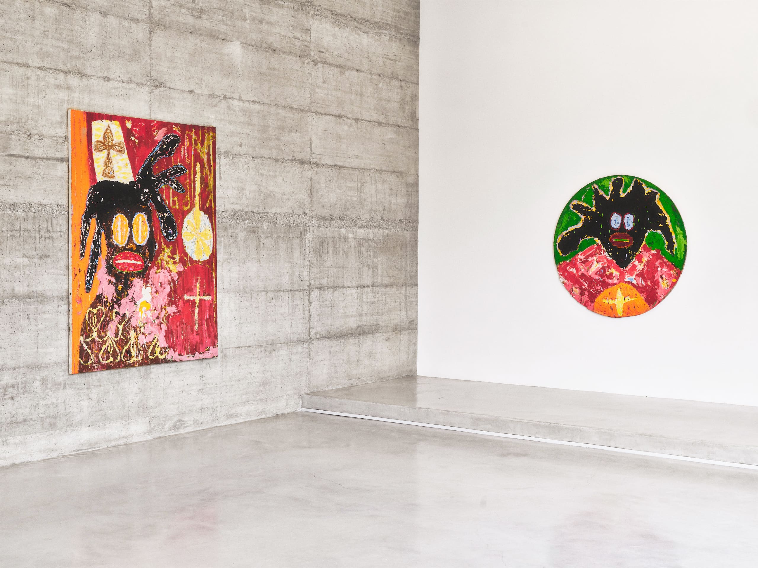 The solo exhibition of Jack Kabangu (Lusaka, Zambia, 1996 – lives in Copenhagen) presents a corpus of recent works in which painting, gesture, and musical rhythm merge into a visual choreography dense with cultural references. Kabangu, a self-taught artist, puts into dialogue diasporic memory, urban mythology, ancestral symbolism, and contemporary pop languages. The result is a processual, synesthetic painting that unites the sublime and the grotesque, light and shadow, in a harmonic synthesis of opposites.